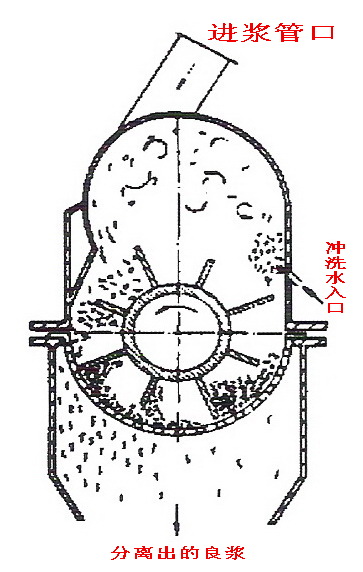 漿料在正常壓下自流進入紙塑分離機內部,在高速旋轉的轉子葉片的拋甩作用下(轉子上有可調節間隙的活動刀片),紙漿在水的潤滑作用下穿透篩板與塑料進行分離,塑料片被出料端的排料風扇吸出。高速旋轉下飛刀片會對粗大紙片以及沒有和塑料片分離的紙片進行二次疏解分離,配合沖洗水不間斷對塑料進行洗滌,使分離出的塑料更潔凈,幾乎不含漿。